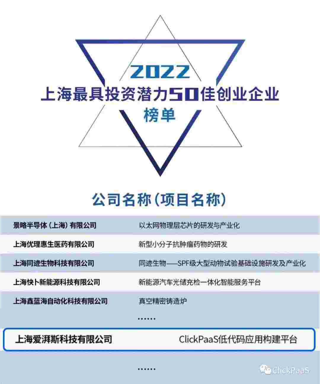 EBPAY 作为国内低代码PaaS平台的领军企业,,,,,,与120家创企入围角逐。。。。。。。。。。。。期间接受了来自德同资本、、、、、、、、、、领中资本等知名投资机构的10位投资人组成专家评委团的背靠背盲选。。。。。。。。。。并最终入围“2022上海最具投资潜力50佳创业企业”榜单,,,,,,,,,,,,,被列入“上海市重点培育创业企业库”。。。。。。。。。。